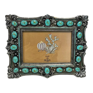 Western Ornate Scroll Turquoise Beads 6” X 4” Picture Frame