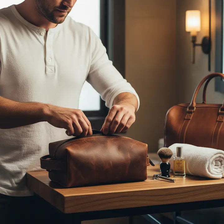 Genuine Leather Unisex Dopp Kit - Rustic Brown