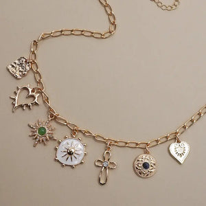 Boho Y Multi Stone Cross Lariat Layer Necklace