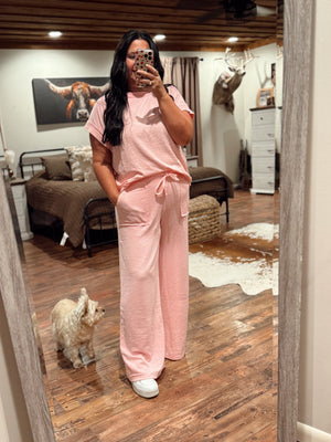 - Washed Slub Short Sleeve Tee & Long Pants Set